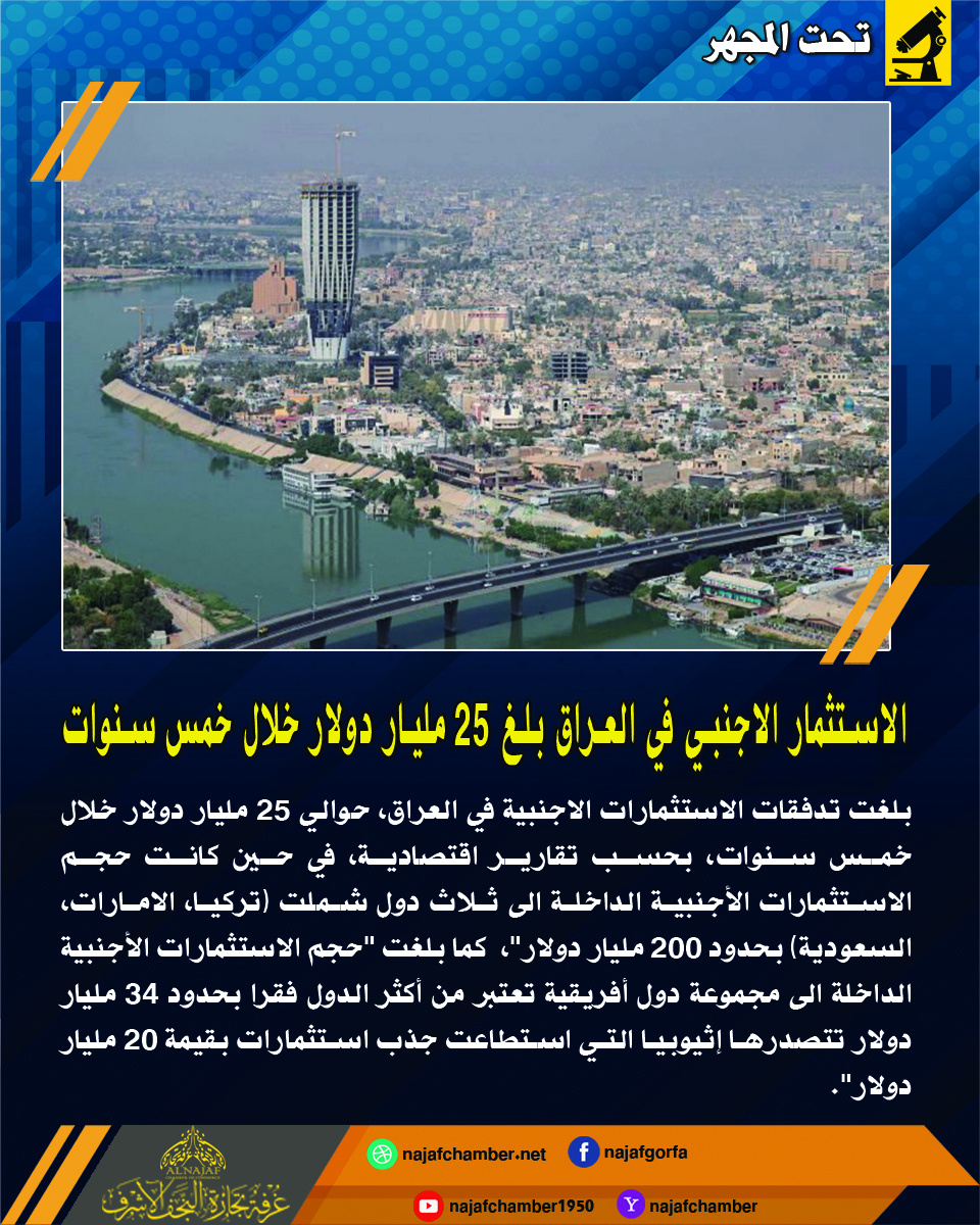 تدفق الاستثمار الاجنبي في العراق بلغ 25 مليار دولار خلال خمس سنوات