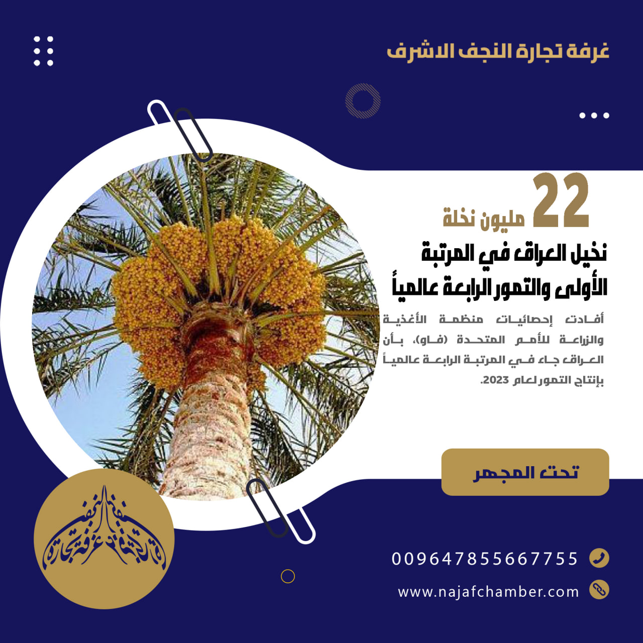 التفاصيل🔹وأوضحت، أن العراق احتل أيضاً المرتبة الرابعة ب 735 ألف طن من التمور، فيما احتلت أشجار النخيل في العراق، المرتبة الأولى عالميا بـ 22...