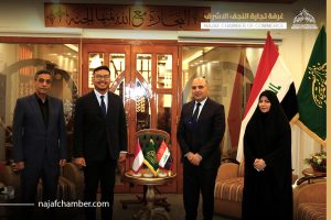 The Najaf Chamber of Commerce received the First Secretary of the Commercial Attaché at the Indonesian Embassy in Baghdad, Mr. Sartono Hendarso. During the meeting, Chamber President Eng. Haider Al-Athari spoke about opportunities for economic and trade cooperation between the two countries, particularly in Najaf, an industrial, agricultural, and touristic city.