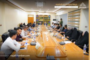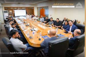 The Najaf Chamber of Commerce, in cooperation with the Federation of Chambers of Commerce, held a seminar on entrepreneurship, attended by a select group of young entrepreneurs. The session was attended by Eng. Haider Al-Athari, President of the Najaf Chamber of Commerce; Falah Al-Jubouri, Director of the Entrepreneurship Department at the Federation of Chambers of Commerce; and Radwan Al-Ramahi, Founder of Co Space for Business.